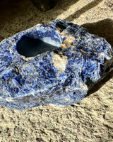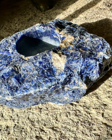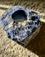 Sodalite Candle Holder Illuminate your space with the calming energy of sodalite, a deep blue crystal cherished for its connection to intuition and inner peace. This elegant candle holder combines the natural beauty of sodalite with functional design, creating a serene focal point for any room. Sodalite is traditionally believed to enhance clarity of thought, promote restful sleep, and encourage spiritual awareness. Perfect for meditation spaces, bedside tables, or as a thoughtful gift for someone seeking balance and tranquility in their daily life.