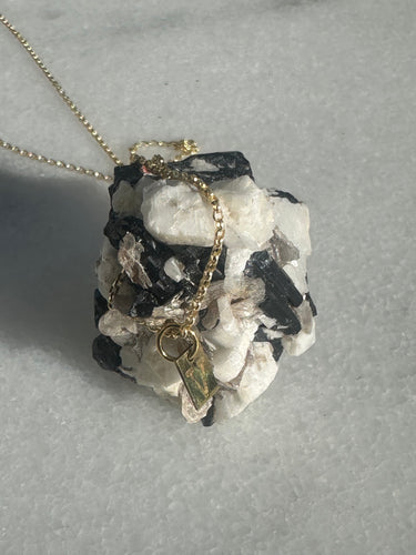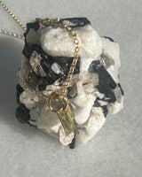 Black Tourmaline from Erongo, Namibia, set in a18k gold filled silver chain.