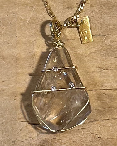 18k Recycled Gold Chain with One Of A Kind Citrine Quartz Set in 18k Gold and Three Small White Diamonds.