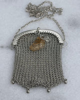 Antique Minaudière with Rutilated Quartz Pendant and Engraved Plate. Wear both as a Necklace or a Night Bag.