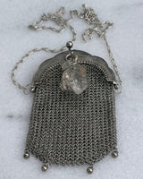 Antique Minaudière with Herkimer Diamond Pendant and Engraved Plate. Wear both as a Necklace or a Night Bag.