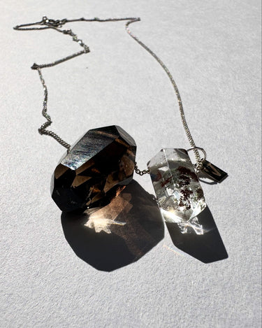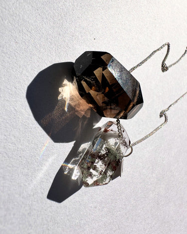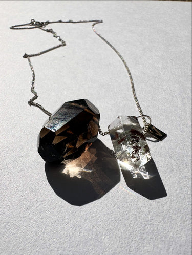 925 Sterling Silver Chain with Smoky and Shamanic Quartz.